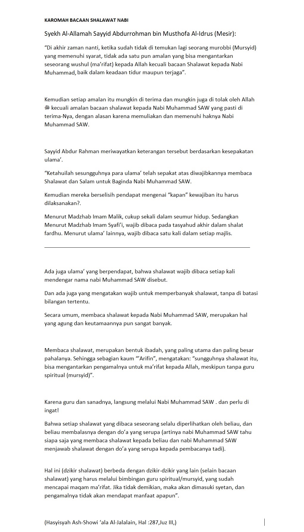 “Perbanyaklah sholawat kepadaku (terutama)