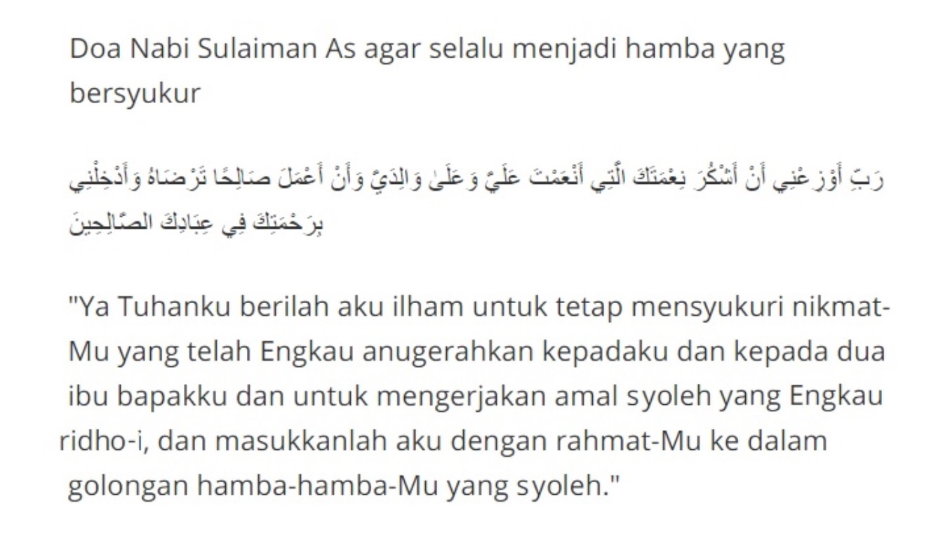 ‘Umar terheran dan berkata, “Do’a apa ini?” Orang tersebut menjawab, “Aku pernah mendengar firman Allah (yang artinya): Amat Sedikit di antara hamba-Ku yang mau bersyukur. Aku pun berdo’a pada Allah